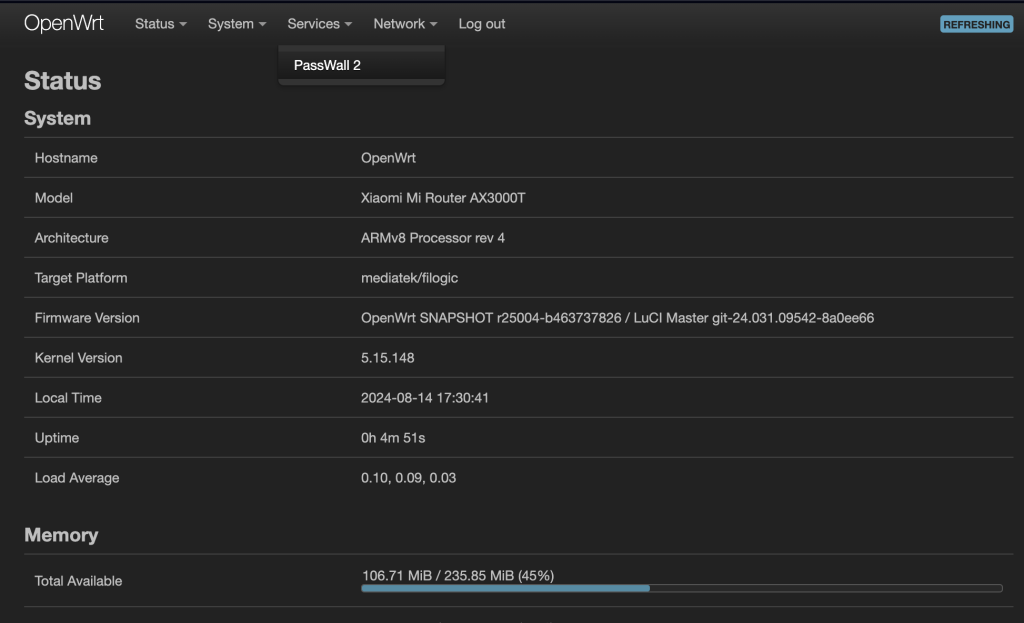 ۵- منوی Services رو باز کنید و روی گزینه PassWall 2 کلیک کنید 👇